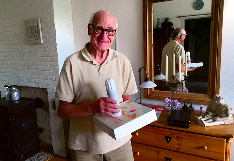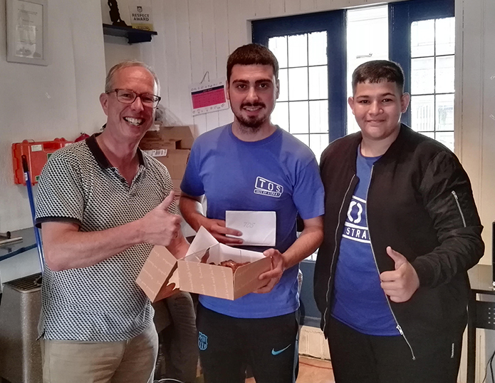 Arjan de Schipper heeft namens de Kerk van de Nazarener Rotterdam een appeltaart bezorgd bij TOS.