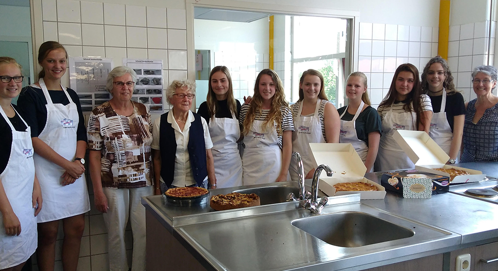 Christel, Mieke en Roos zijn samen naar het Wartburg college gegaan, waar zij 4 taarten overhandigd hebben. (1 gebakken door Gerda) Zij werden ontvangen in de keuken waar een leraar met zijn leerlingen ze enthousiast aanpakten. Het werd erg gewaardeerd dat wij zo aan konden geven hun inspanningen voor de wijk te waarderen.