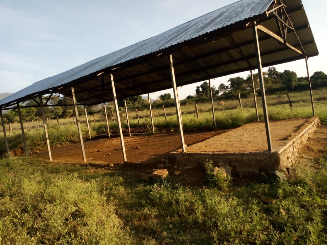 Inmiddels is de fundering en het dak is voltooid, en een deel van de vloer gecementeerd. Wat er nu overblijft is het cementeren van de rest van vloer en de bouw van de muur en het podium. Er zijn ook stoelen, muziek instrumenten, etc. nodig.