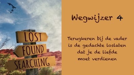 We moeten ontdekken en weten dat God van ons houdt zonder dat we daar maar iets voor hoeven te doen. Het heeft niets te maken met onze productiviteit. En het terugkomen naar de vader, is in wezen het opgeven van de gedachte dat wij de liefde op één of andere manier verdiend hebben. Zolang als ik denk dat ik verdienen moet, dan ben ik verloren en zal ik nooit krijgen waar ik het meest naar verlang. Want de liefde waar ik naar verlang is iets wat ik nooit verdienen kan.