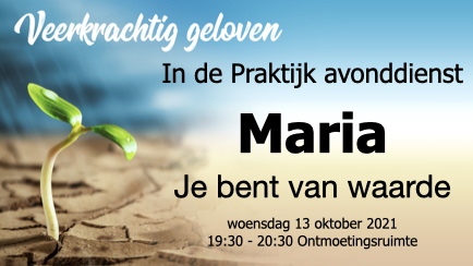 Bij de tweede avonddienst van In de Praktijk kijken we naar het leven van Maria, de moeder van Jezus. Maria leefde vanuit de overtuiging dat ze van waarde is. Maria is een voorbeeld voor ons van iemand die weet dat ze, ondanks haar lage maatschappelijke status, door God geliefd is. Ze weet dat ze van waarde is, niet om wie ze zelf is, maar om wie God is.