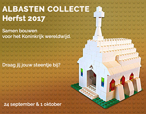 Een mooi voorbeeld direct onder onze neus is het werk dat Dorcas in Kenya doet. Het Albasten geld dat ze ontvangt helpt niet alleen om de gebouwen neer te zetten en haar droom te verwerkelijken. Het helpt ook zichtbaar te maken dat God er juist is wanneer er geen grote dingen gebeuren. Op 24 september en 1 oktober staat het kerkje vooraan. Ik ben benieuwd hoeveel muurtjes en daken we bij elkaar lego-en. Jij ook?