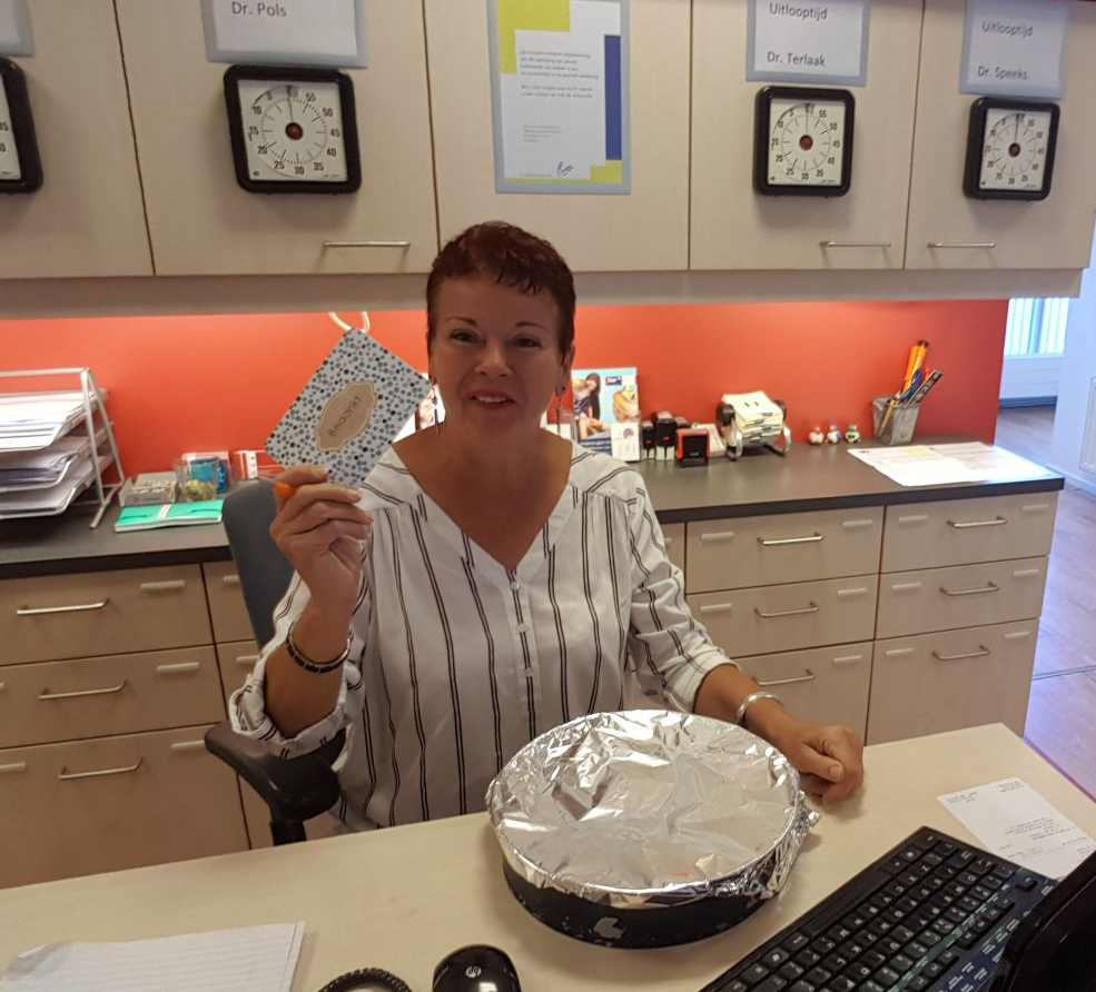 ds. Stephen Overduin heeft namens de kerk als blijk van onze waardering een appeltaart bezorgd bij Huisartsen Carnisse.