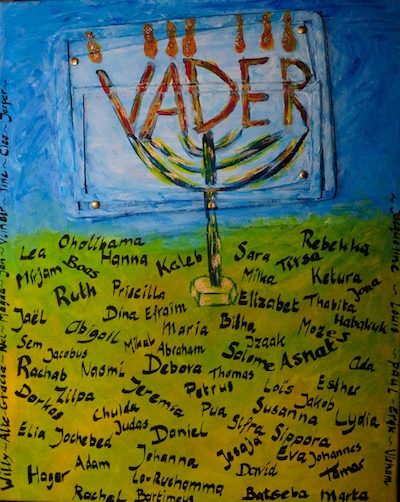 Dit schilderij is gemaakt door de schilderclub van de Kerk van de Nazarener. Zij maken voor elke week een schilderij waarmee ze de bede van die week verbeelden. Deze week: Laat Uw naam geheiligd worden