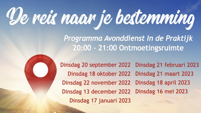 Ons nieuwe jaarthema is De reis naar je bestemming. Ons leven met God wordt vaak vergeleken met een reis. We worden uitgenodigd om met Hem op weg te gaan. Maar weet je eigenlijk wel wie God is? Daarom kijken we dit seizoen naar verschillende beelden over God. Vanavond: God is goed.