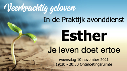 We kijken deze avond naar het leven van Esther. Esther kwam in een moeilijke positie terecht. Toch had ze een keuze hoe ze daarop wilde reageren. En in die keuze vond ze de zin en de betekenis van haar leven. Als herinnering aan deze gebeurtenissen vieren Joodse gelovigen nog steeds elk jaar het Poerimfeest. Het is goed om belangrijke momenten in je leven te markeren. Dat helpt je om de zin in je eigen leven te ontdekken en te zien hoe God werkt in jouw leven.